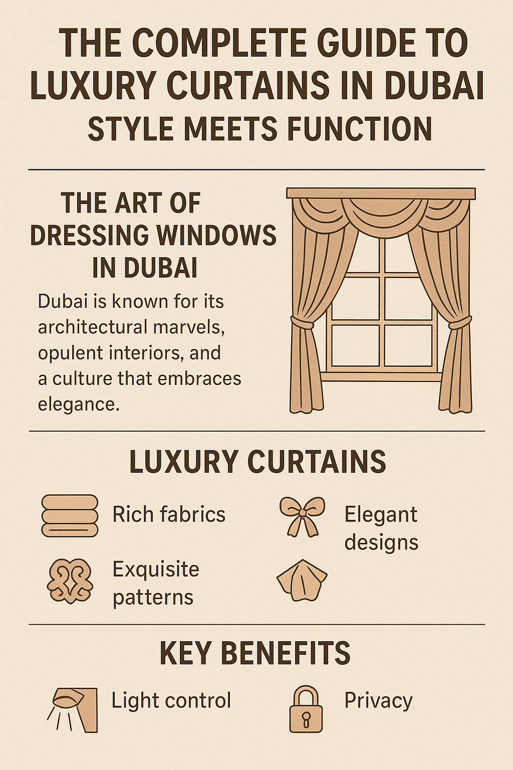 Luxury curtains in Dubai are more than just fabric hanging from a rod; they are a blend of style, craftsmanship, and function. They soften natural light, enhance privacy, regulate temperature, and add personality to your interiors. Whether it’s a villa overlooking Palm Jumeirah or a modern apartment in Downtown Dubai, selecting the right curtains can completely transform your living space.This guide takes you through the world of luxury curtains in Dubai — from the latest fabric choices and design trends to expert tips on customization, installation, and long-term maintenance.
